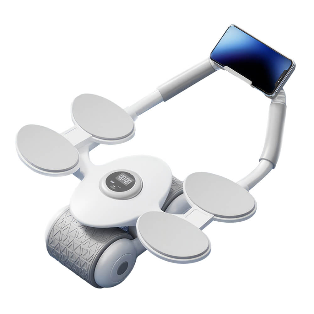 The ab roller is built with durable steel and premium rubber materials. Its automatic rebound mechanism provides up to 2.3 meters of smooth rebound distance, supported by a silent internal spring for steady movement. The integrated limit brake system enhances stability during use.